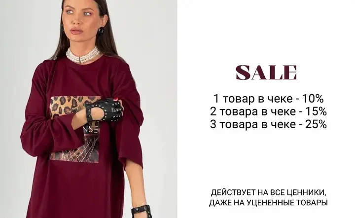Скидки действуют даже на уценённые позиции! Чем больше стильных находок в вашем шопинг-бэге, тем выгоднее!